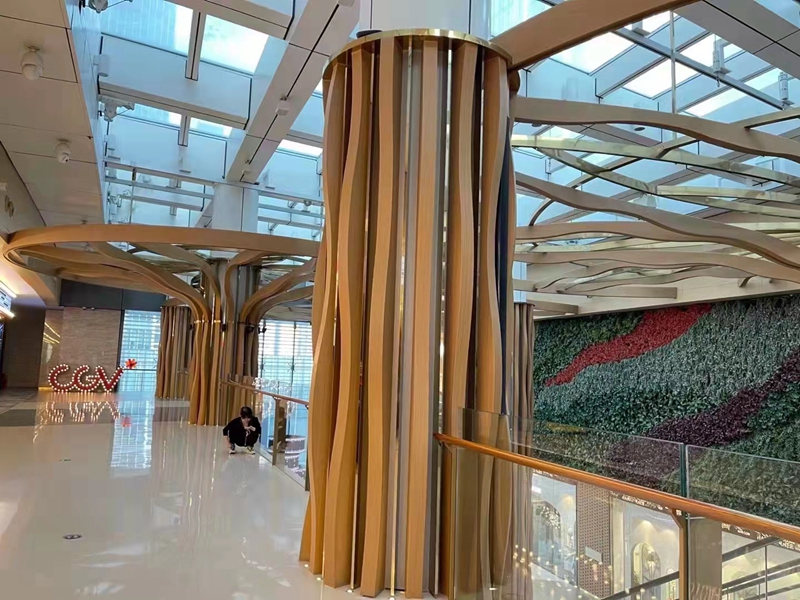 廣泛應用于各種建筑內(nèi)外墻、大堂門面、柱飾、高架走廊、梁柱、機場、車站、醫(yī)院、人行天橋、室內(nèi)異形吊頂?shù)取?br> All kinds of building external walls, the lobby facade, column act the role ofing, elevated corridors, beams, airports, railway stations, hospitals, pedestrian bridge, indoor alien condole top, etc.